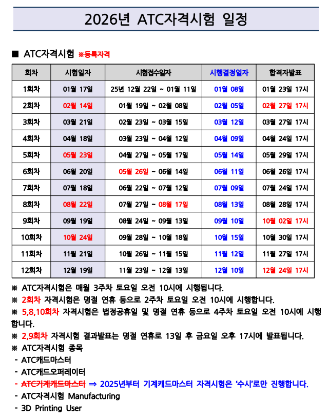 10월 25일 ATC 자격시험 접수는 10월 19일에 마감됩니다.